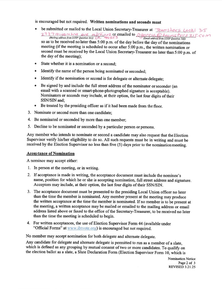 Nominations Notice for 2025 IBT Delegates & Alternates (English version)